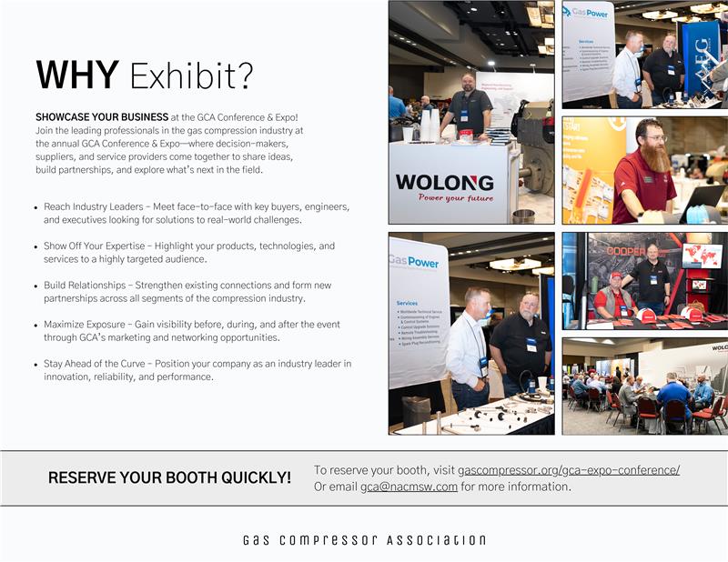 With a focus on education, innovation, and networking, the Gas Compressor Association’s Annual Expo and Conference is a must-attend event for anyone in the natural gas compression industry.